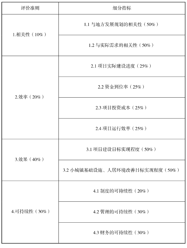 小城镇规划建设项目绩效评价指标体系