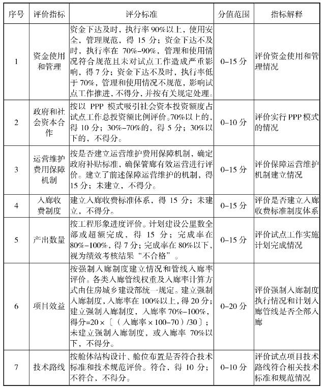 地下综合管廊试点绩效评价指标体系
