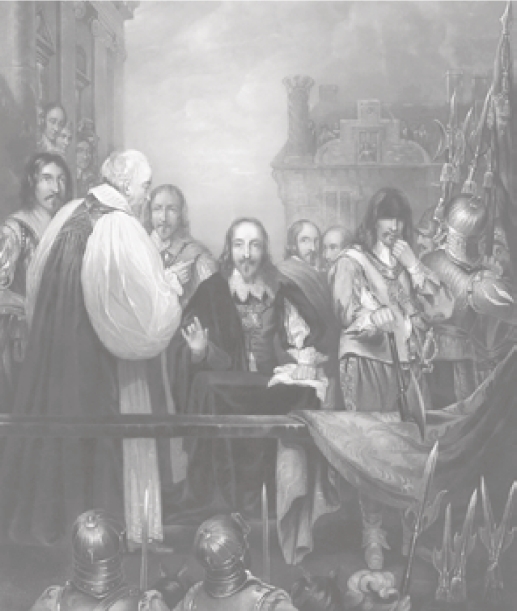 在处理查理一世的问题上,奥利弗·克伦威尔和大部分军官之间的意见很快就出现了分歧。奥利弗·克伦威尔赞成他们将查理一世抓起来,认为将查理一世送上法庭是正义的。但如果有更令人满意的权宜之计来保障国民权利的话,他对审判并惩治查理一世的政策表示怀疑。也许废黜查理一世就足够了,也许查理一世最终会改变心意做出让步。在之后的三个星期,外界对军官会议上进行的讨论内容知之甚少。谣传他们之间出现了很大的分歧,一方坚决要求惩罚查理一世,另一方觉得废黜查理一世或者对他实施监禁就够了。从奥利弗·克伦威尔与律师和法官就国家组建问题进行协商的只言片语中,我们发现他最后曾经尝试与查理一世达成协议。奥利弗·克伦威尔认为,如果查理一世接受现在的条件,放他一条生路也是可以的。但所有的折中办法都失败了。查理一世宁愿舍弃性命,也不愿意放弃王权。然而,除非查理一世妥协,否则宪法问题无法得到解决。因此,军事革命在发展过程中虽然一度受阻,但仍然不可避免地向前推进,而奥利弗·克伦威尔也随着潮流前进。