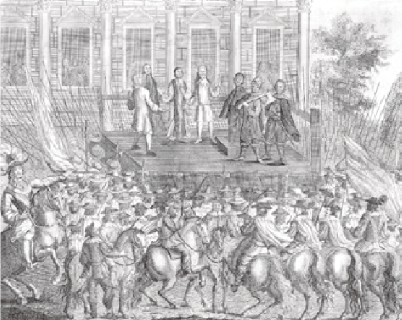 另一个蒙面人拿着查理一世的头,一言不发地举到人们面前。断头台周围成千上万的人发出了呻吟。菲利普·亨利写道:“这样的呻吟是我从来没有听到过的。我希望再也不会听到了。”接着,菲利普·亨利看见两队骑兵连,一队朝威斯敏斯特方向,一队朝查令十字街方向,粗鲁地驱散着人群。他很高兴能平安无事地回到了家。