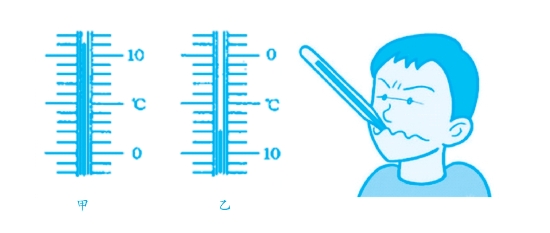 观察温度计也有学问。正确的方法是,让眼睛与温度计里面的液体上端平齐,这样读出来的数据才正确。如果是三棱镜的体温计,只有把数字和刻度之间的棱刚好对准眼睛,这时看到的水银柱才最清楚。