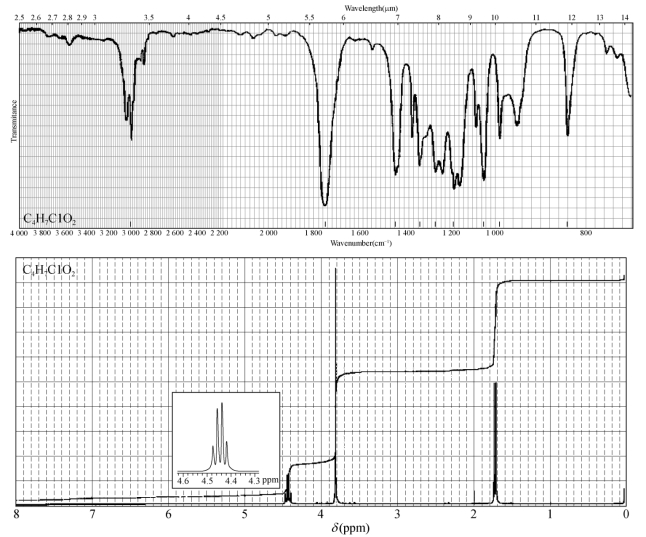 图4-70 化合物A(C4H7ClO2)的IR与1 H NMR谱