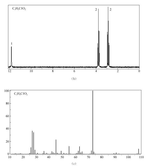 图4-71 化合物B(C3H5ClO2)的IR、1 H NMR与MS谱