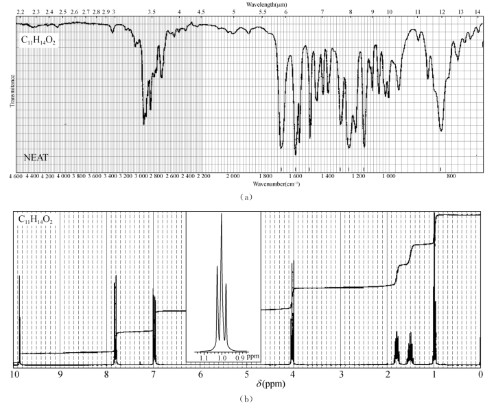 图4-73 化合物D(C11H14O2)的IR与1 H NMR谱