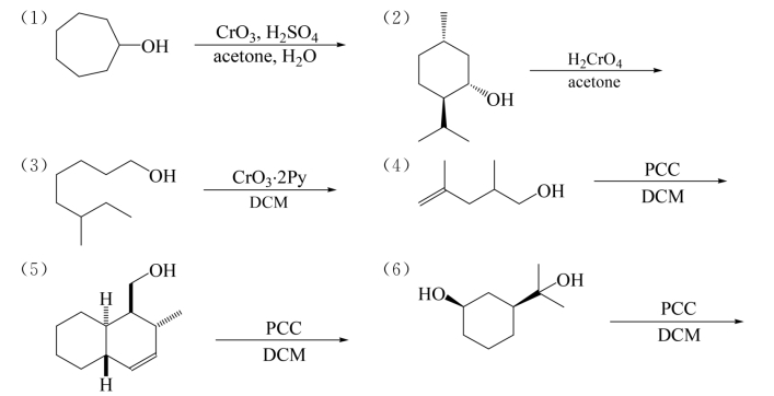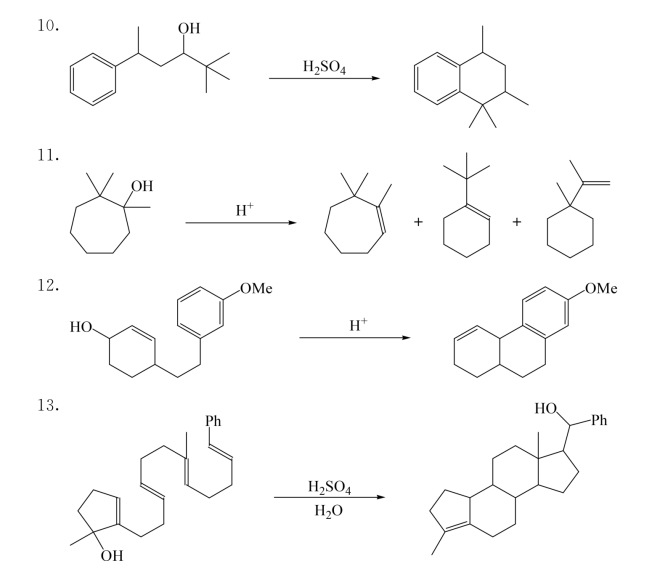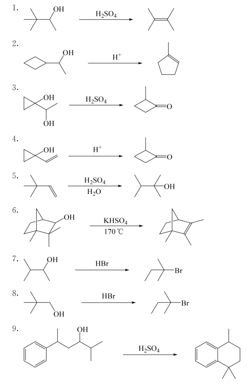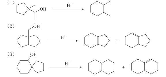 1.化合物A(C6H14O)经Collins氧化,νmax3 300 cm-1带消失转而出现1 710 cm-1强峰,与硫酸氢钾共热,除得到主要产物B(C6H12)外,还得到其异构体C和D.B的氢谱显示只有一个信号.B经臭氧化-还原水解只得一种产物E(C3H6O),其氢谱也只有一个信号,δH2.2(s)ppm,IR有强吸收νmax1 715(s)cm-1.试给出A~E的结构.