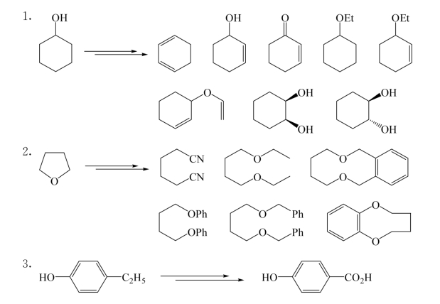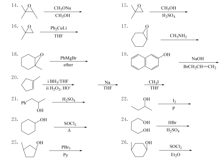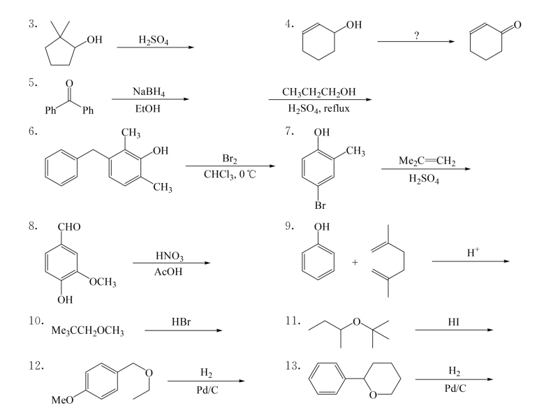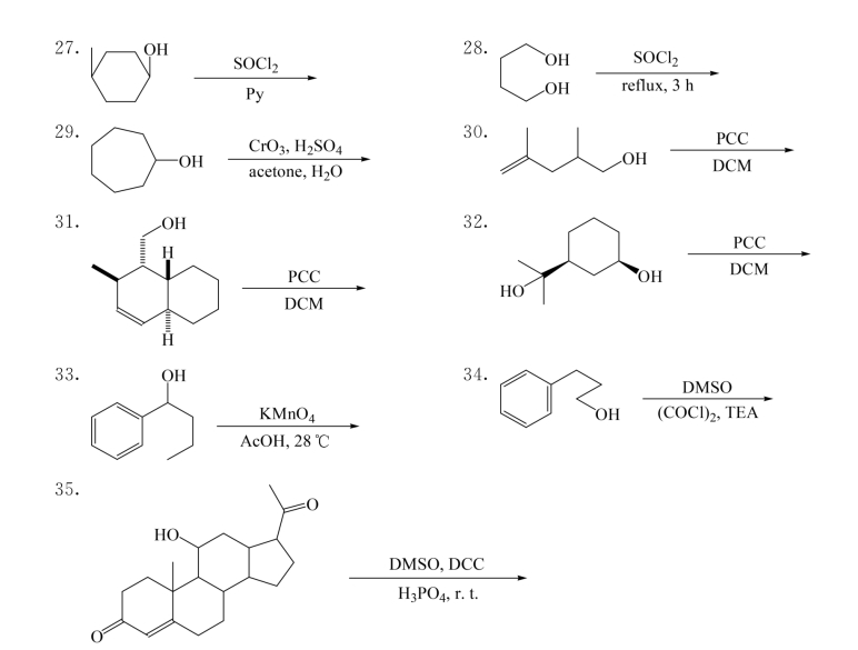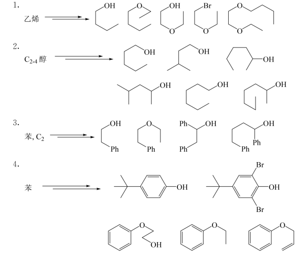烯丙醇、苯甲醇、巴豆醇、肉桂醇、频哪醇(pinacol)、水杨醇、薄荷醇、甘醇、二甘醇、甘油、甲酚、儿茶酚、氢醌、苦味酸、丁香酚、环氧氯丙烷、茴香醚、THF、MTBE、BHT、乙二醇二甲醚、二噁烷(二氧六环).