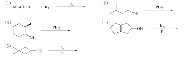 2.化合物A(C5H12O)可被铬酸氧化,与硫酸氢钾共热,得到B和C(C5H10),经氢化(H2/Ni)处理都得到异戊烷.B经臭氧化-还原水解(O3then Zn/H2O)得到D(C3H6O)和E(C2H4O),其1 H NMR与IR数据如示:DδH2.16(s,6 H)ppm;ννmax1 715(s)cm-1.EδH9.79(s,1 H),2.21(s,3 H)ppm;ννmax1 727(s)cm-1.试给出A~E的结构.
