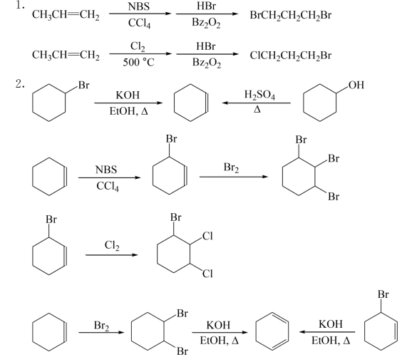 1.BrCH2CH2Br+BrCH2CH2I+BrCH2CH2OH