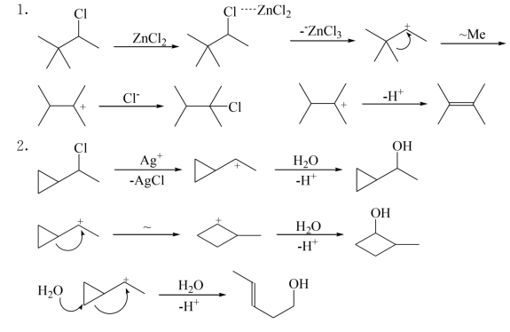 1.似为单分子亲核取代,中间体碳正离子愈稳定愈易生成,反应愈快.对甲氧苯甲基正离子因甲氧基的给电子共轭效应稳定化,而间甲氧基苯甲基正离子因甲氧基的吸电子诱导效应而去稳定化.