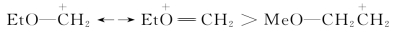 2.EtOCH2Cl电离产生的碳正离子由于氧原子的给电子共轭效应(p-p共轭)而稳定化,因而比正丁基氯的水解快.MeOCH2CH2Cl,由于甲氧基隔一个饱和碳原子连接碳正离子而仅存在吸电子诱导效应(-I),故比丁基正离子不稳定,所以水解速度不如正丁基氯的快.