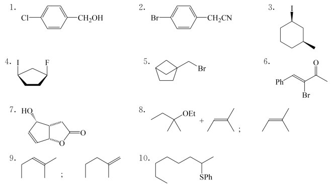 1.SN2:B,D(E). 2.SN1:D,A. 3.E:D,A.