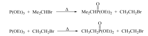 2-溴丙烷与亚磷酸乙酯反应,先是生成乙基膦酸乙酯和溴乙烷.由于溴乙烷的反应活性要比2-溴丙烷的高,因此,一旦产生便立刻竞争与亚磷酸乙酯反应,给出乙基膦酸乙酯和新的溴乙烷.如此循环反应,直至把亚磷酸乙酯消耗完毕.