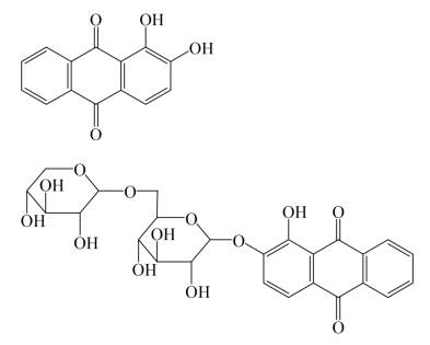 茜草根酸分子中的两个糖苷键构型不能确定,实际上都是β-型.