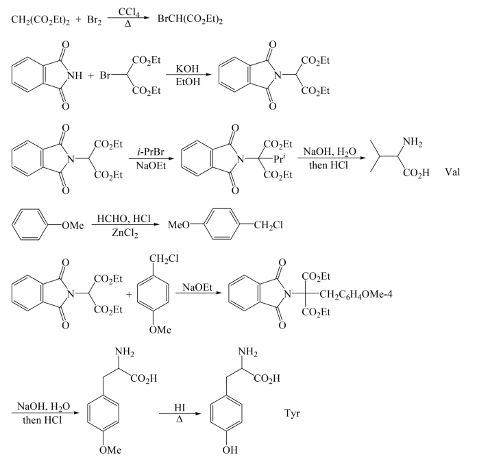 4.利用Gabriel-丙二酸酯法合成缬氨酸和酪氨酸.