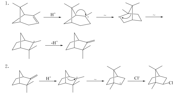 产物俗称异冰片基氯(isobornyl chloride),是外式的(exo),而且是可以解释的.
