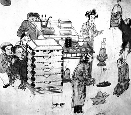 在宋代,闹市里的酒楼陈设金银酒器供顾客使用。宋代酒楼分为两种高级档次,一种是以和乐楼、和丰楼、丰乐楼为代表,“属户部点检所,设官妓数十人,各有金银酒器千两,以供饮客之用……往往皆学舍士夫所据,外人未易登也”,是官宦来往的酒楼;另一类是以熙春楼、三元楼和严厨、任厨、陈厨等厨师姓氏命名的“市楼之表表者”。 (参见周密《武林旧事》)“酒器悉用银,以竞华侈”,且“每楼各分小阁十余”。插个题外话,在餐饮管理上,宋代已设有包厢,真可谓走在时代之前了。