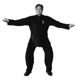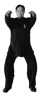 要点:双手上托下按,呼吸天地之清气,同时重心下沉,使浊气下降;由手部导引,使清气经百会穴进入脏腑归于丹田。气贯两足,呼吸自然,可反复练习。