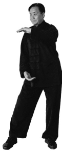 2. 身体回转时,双手换成左下右上,沉肩坠肘,立身中正,重心缓缓右移,腰胯向右拧转,如此反复(如图3 至图5 所示)。