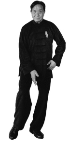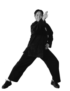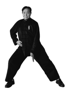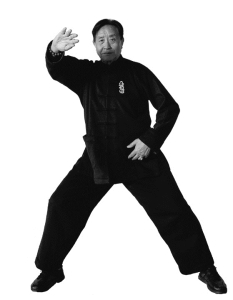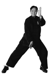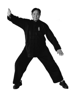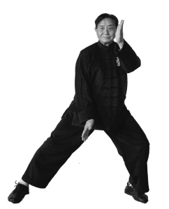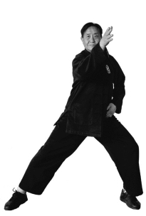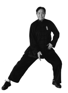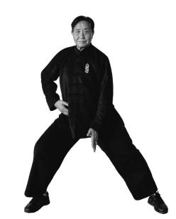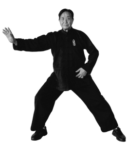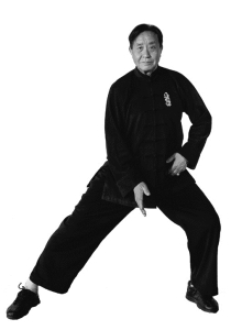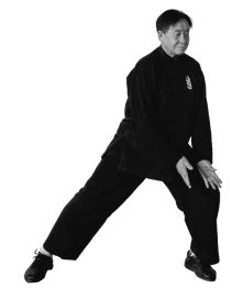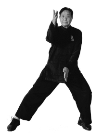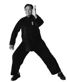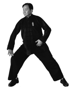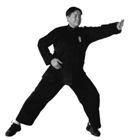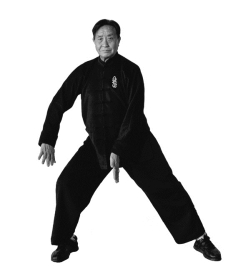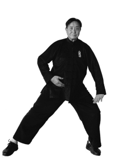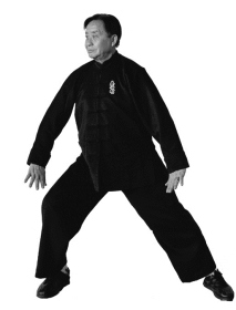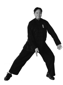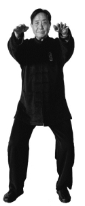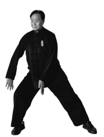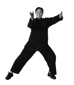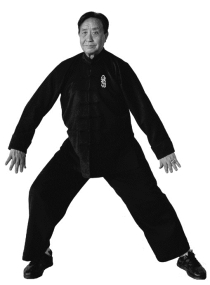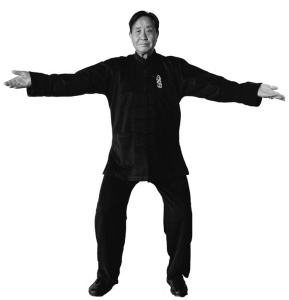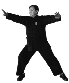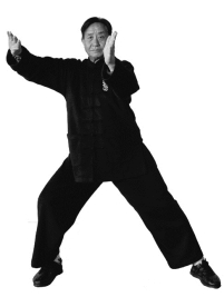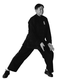 注意:在练习时,可分为高、中、低架子练习。初学者多数练习中架,中架以自己的三脚宽距离为准,可根据自己的体力大小来定,也可作太极桩功练习。