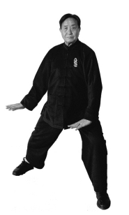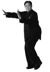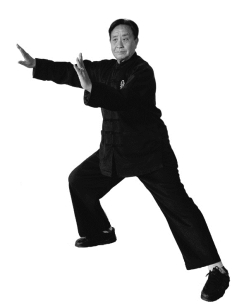 要点:震脚重心要稳,左实右虚,如履薄冰。顶劲领起,两眼平视,耳听两侧与身后。