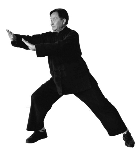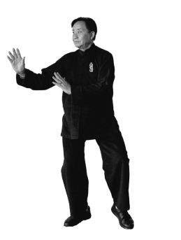 要点:双手推出相合,蹋腰松胯,双肘下沉里合劲,左手推出不得超过中线,双手不得高于肩,两眼平视,不得低头。