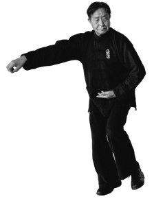 要点:此势为中定势,用内外三合将劲合住,手与足合,肘与膝合,肩与胯合为外三合。心与意合,气与力合,筋与骨合为内三合。将丹田之气运于四梢,沉肘松肩,含胸蹋腰,两眼平视,开中寓合,合中寓开,裆开贵圆,支撑八面。