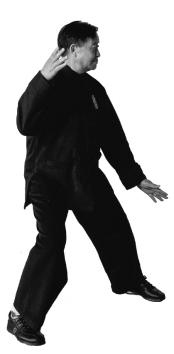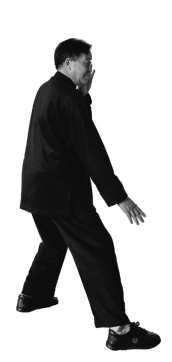 要点:弧形向侧后退步,足不要提高,松胯蹋腰,两眼目视前方,注意力在左右两侧,有退进攻防之法但退意在进。