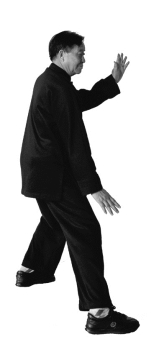 要点:倒卷肱接白鹅亮翅,松胯蹋腰圆裆,气沉丹田,行于两手,掤劲不丢。两眼平视。