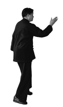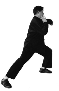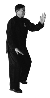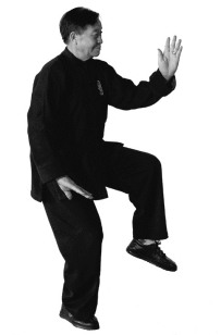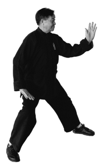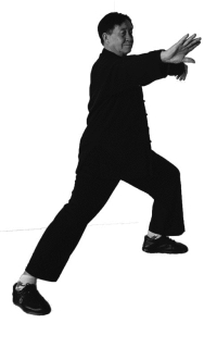 要点:左实右虚,屈膝松胯,立身中正,顶劲领起,节节要松,气沉丹田,两眼平视,侧视右手,耳听左右。