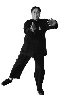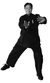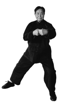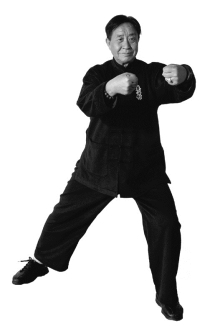 要点:松胯拧腰,变换重心,裆劲不丢,双手变双拳,小缠丝转于腹前,左前右后冲拳在胸前。
