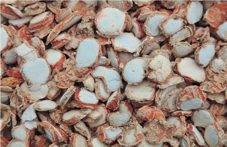 山柰也叫沙姜、山辣,为根状茎,一年生草本植物,性耐旱、耐瘠、怕浸。山柰有行气、温中、消食、止痛的作用,可用于胸膈胀满、脘腹冷痛、饮食不消。其味芳香、药性温、味辛,属苦涩料。制作火锅汤汁时用量在1~3克即可(图1-3)。
