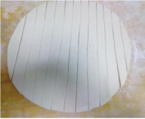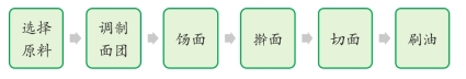 把所有原料拌和成面团,反复揉搓直到表面光滑,饧面30分钟,然后擀制成薄皮,用刀切成长5厘米的块,刷上油即可(图6-22)。