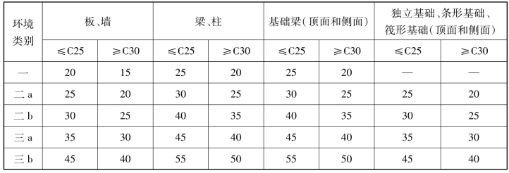 表0.1 混凝土保护层的最小厚度c 单位:mm