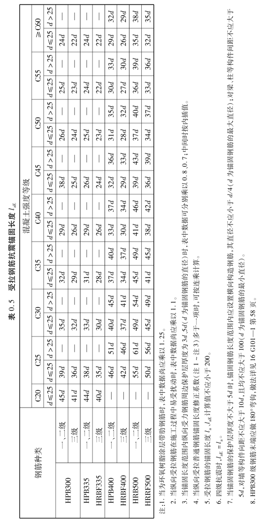 (1)受拉基本锚固长度lab和实际拉锚长度la