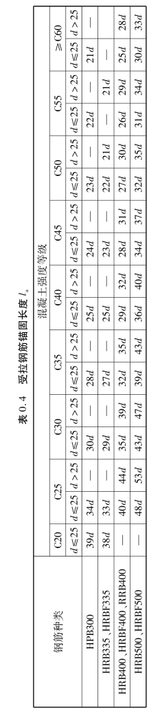 (3)锚长的确定:与进入支座前的受力和构件本身的重要性有关