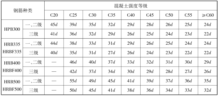 基本锚固长度lab的来源,最原始的是钢筋在受拉状态下,钢筋的屈服破坏和混凝土的受拉破坏同时产生,即充分利用强度的前提下,用计算公式求得钢筋的至少埋入长度。但在实际工作中,计算公式法比较麻烦,不如查表来得直接(如查表0.2和表0.3)。