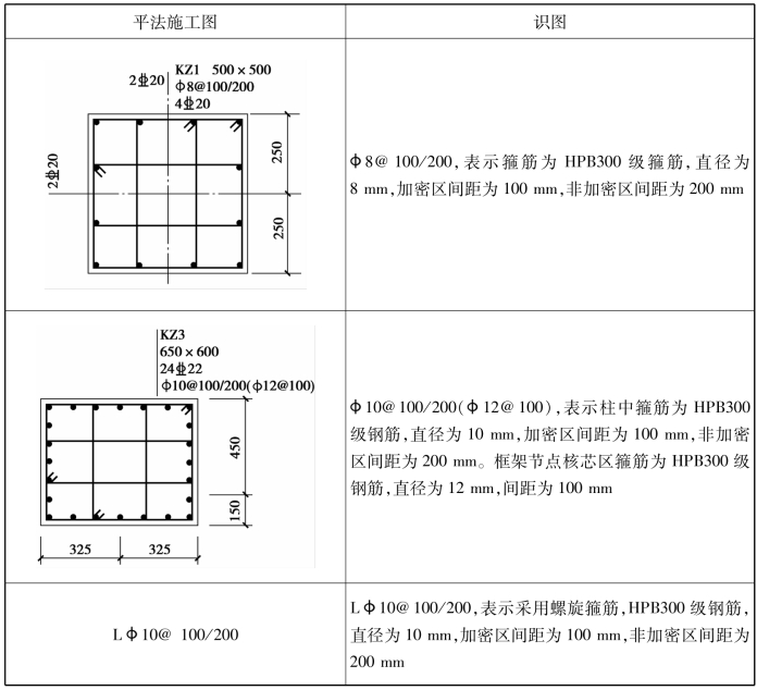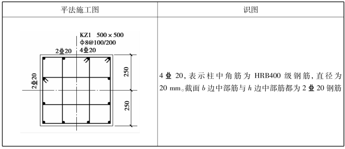 当纵筋采用两种直径时,需要注写截面各边中部筋的具体数值(对于采用对称配筋的矩形截面柱,可仅在一侧注写中部筋,对称边省略不注),见图2.2。