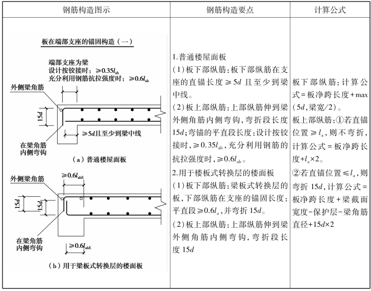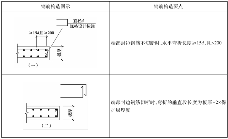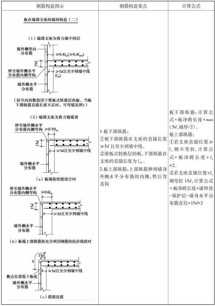 表4.5 楼板端部支座的钢筋构造(16G101—1第99和100页)