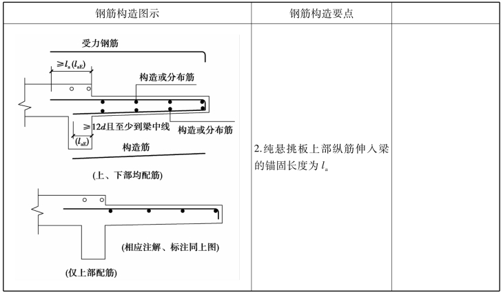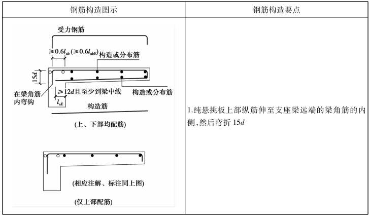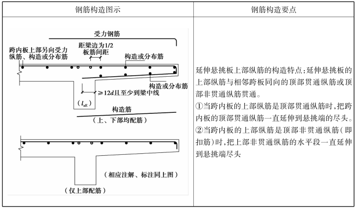 表4.8 延伸悬挑板上部纵筋的锚固构造(16G101—1第103页)
