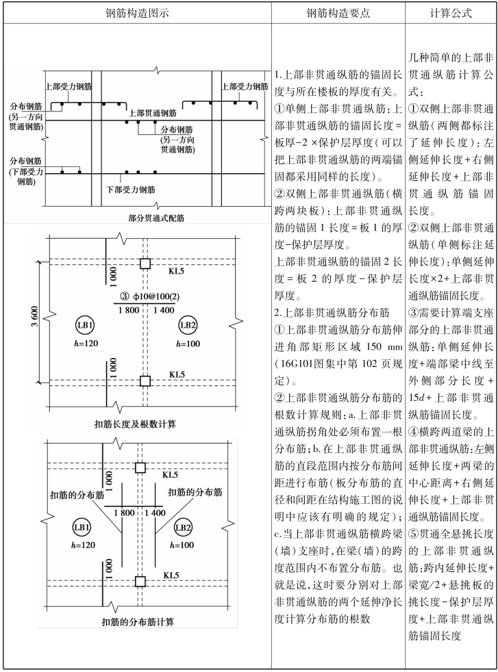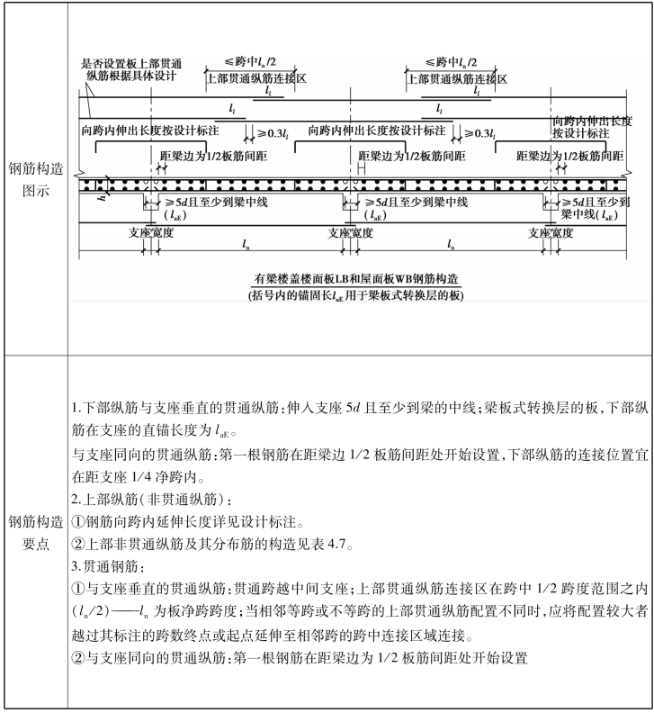 (3)上部非贯通纵筋及其分布筋的构造(表4.7)