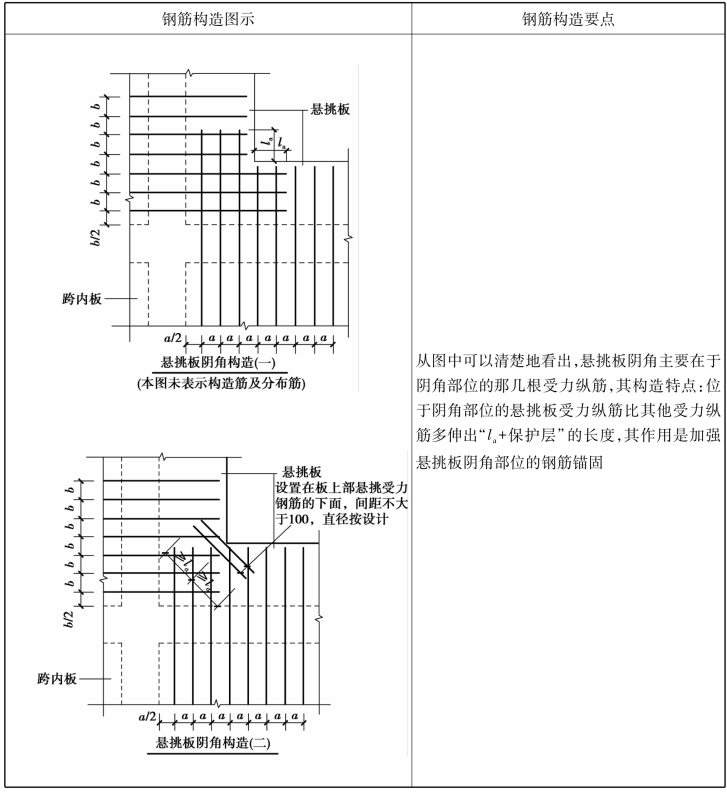 表4.12 悬挑板阴角构造(16G101—1第113页)