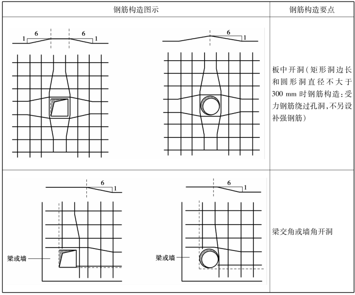 3)板开洞与洞边加强钢筋构造(表4.15、表4.16)
