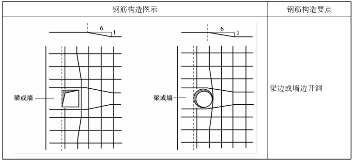 表4.16 板开洞BD与洞边加强钢筋构造二(洞边无集中荷载)(16G101—1第111页)