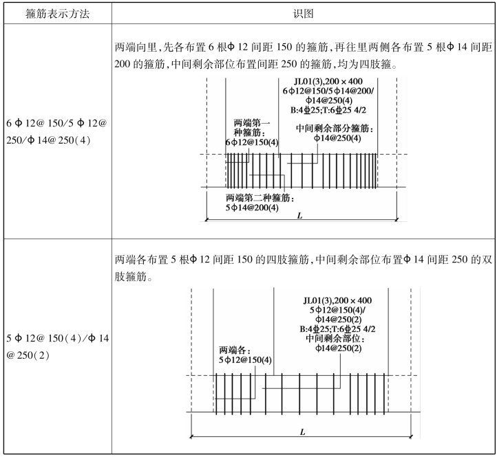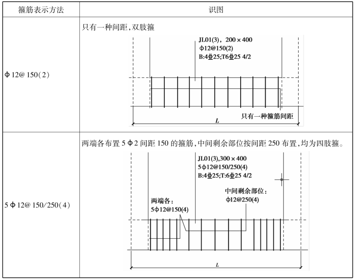 a.箍筋:基础梁箍筋表示方法的平法识图,见表6.5。