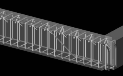 基础梁端部及柱下区域原位标注的纵筋,是指标注该位置的所有纵筋,包括集中标注的底部贯通纵筋(图6.11),一定要理解原位标注的纵筋与集中标注的纵筋的关系。施工效果图见图6.12。