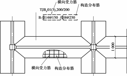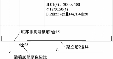 当基础梁底部跨中钢筋的根数少于箍筋的肢数时,需要在跨中增设梁底部架立筋以固定箍筋,见图6.8。