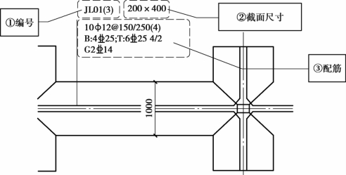 基础梁集中标注包括编号、截面尺寸、配筋3项必注内容(图6.3)。