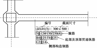 基础主/次梁集中标注包括编号、截面尺寸、箍筋、底部及顶部贯通纵筋等几项内容,如图7.3所示。