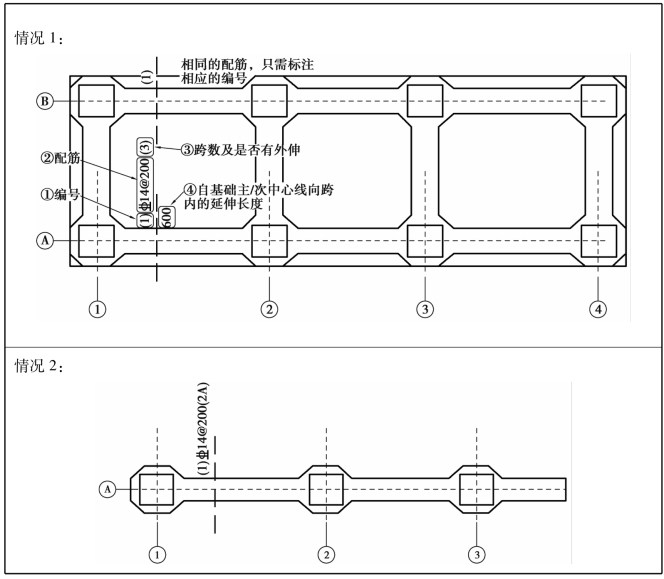 图7.4 基础主/次梁编号平法标注