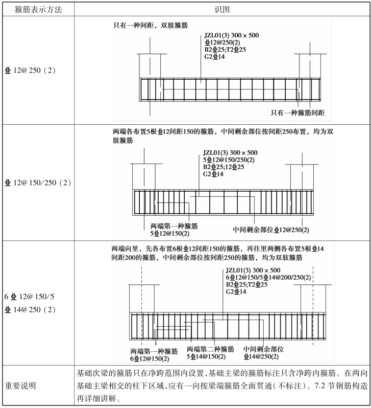 表7.5 基础主/次梁箍筋识图